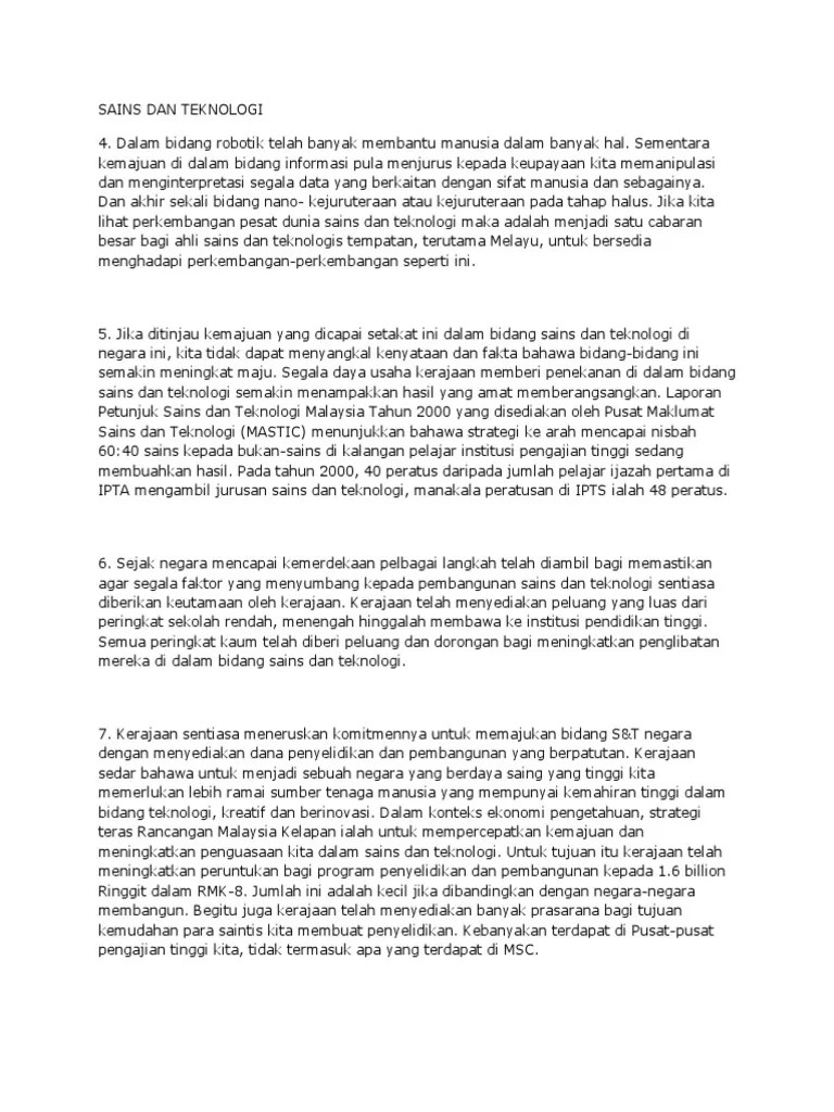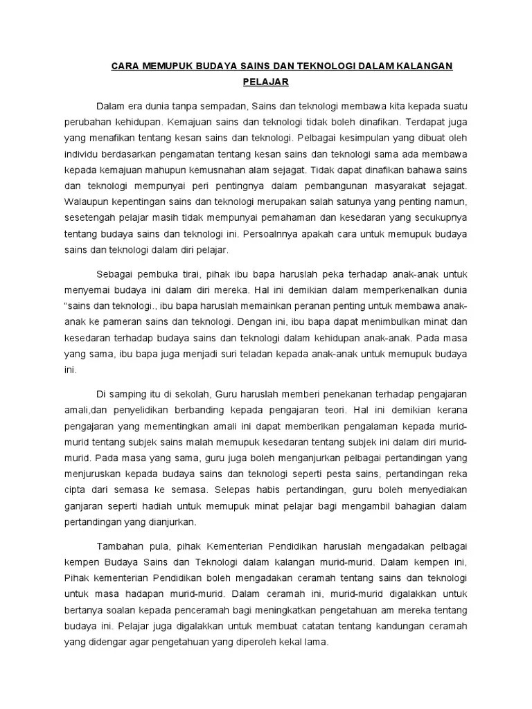 Contoh karangan kebaikan/ pentingnya sains dan teknologi dalam . Pelbagai ciptaan sains dan teknologi telah membantu manusia dalam. Karangan stpm menyediakan beberapa contoh karangan untuk dijadikan bahan rujukan kepada pelajar. Sains dan teknologi membawa kita kepada suatu perubahan kehidupan.